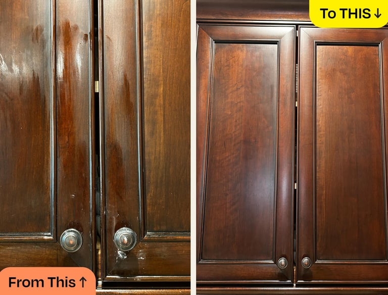 When done correctly, cabinets look refreshed — not shiny, not greasy — just clean and cared for.